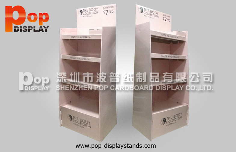 Description of Pink Cosmetic Cardboard Display Stands , Floor Display Stands In Supermarket