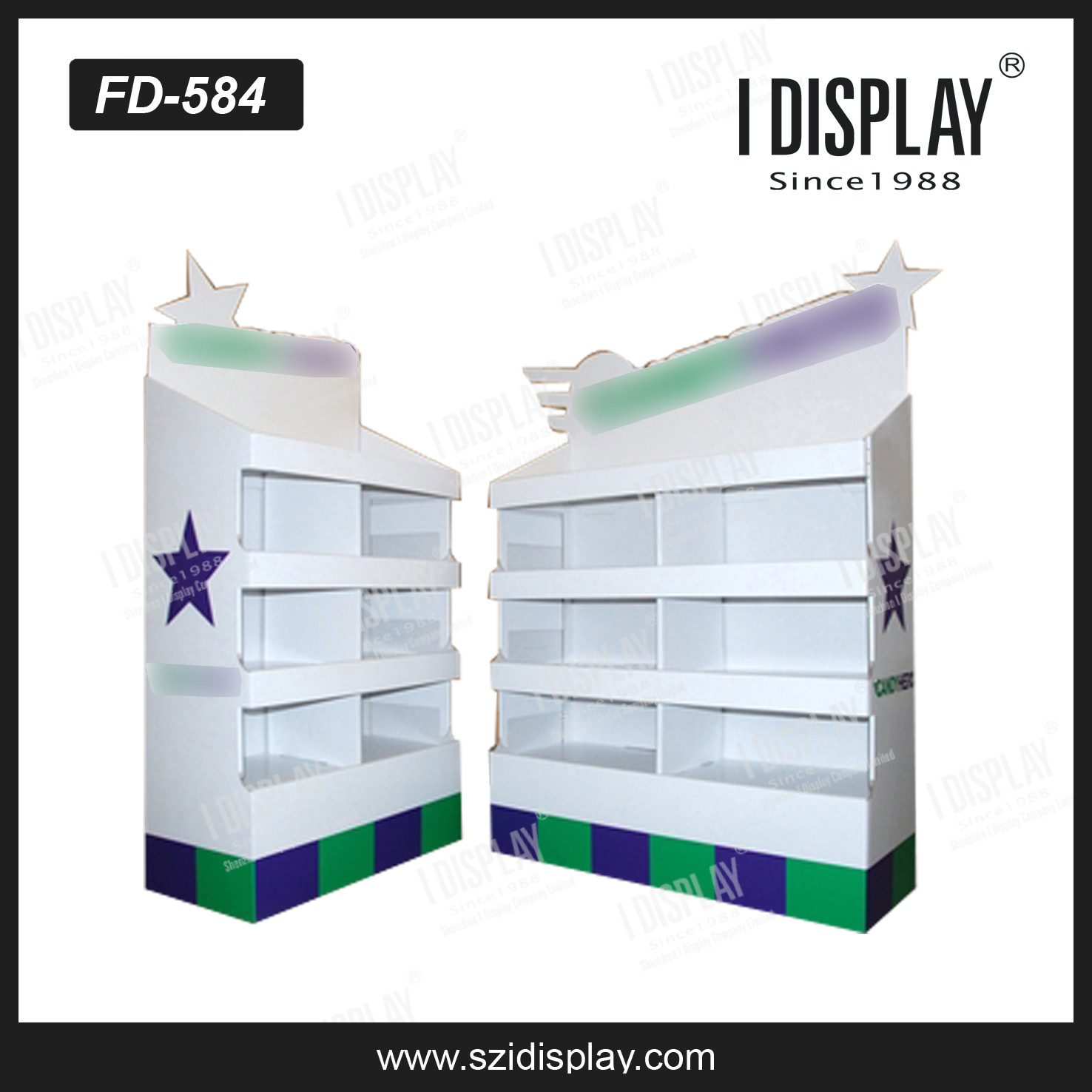 FD-584 folding recyclable corrugated cardboard display stand flooring display for supermarket: