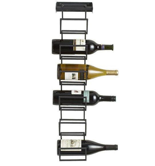 These individual iron wine racks are the ultimate in space-saving simplicity. Simply secure one to the wall and hook multiples below to create a chain-like vertical rack that easily fits the space you have.